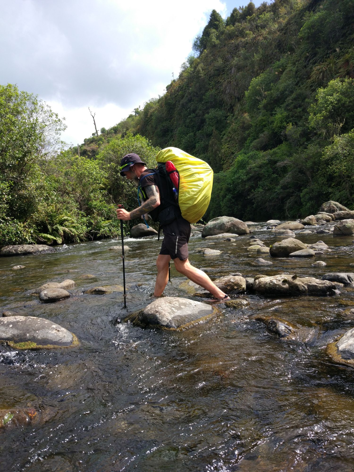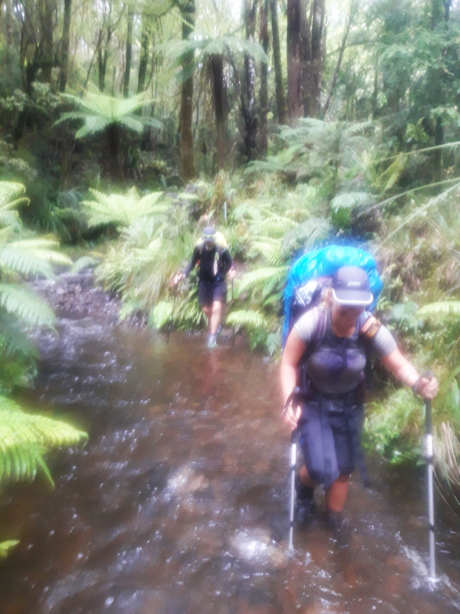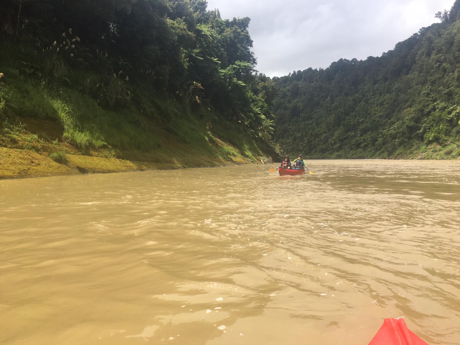 Kurze Zeit später kamen uns die Engländer Paul und Kathryn entgegen, die auf dem Weg nach Taumarunui waren. Sie haben den Trail nämlich letzte Woche, wegen des schlechten Wetters, ja auch angepasst. Nach einem netten Plausch ging es dann weiter, allerdings wurde der Trail nun matschiger. Dadurch das es die letzten Tage nicht soviel regnete, konnten wir das „Rivercrossing“ ohne größere Probleme erledigen. Das Wasser ging mir maximal bis zu den Oberschenkeln.