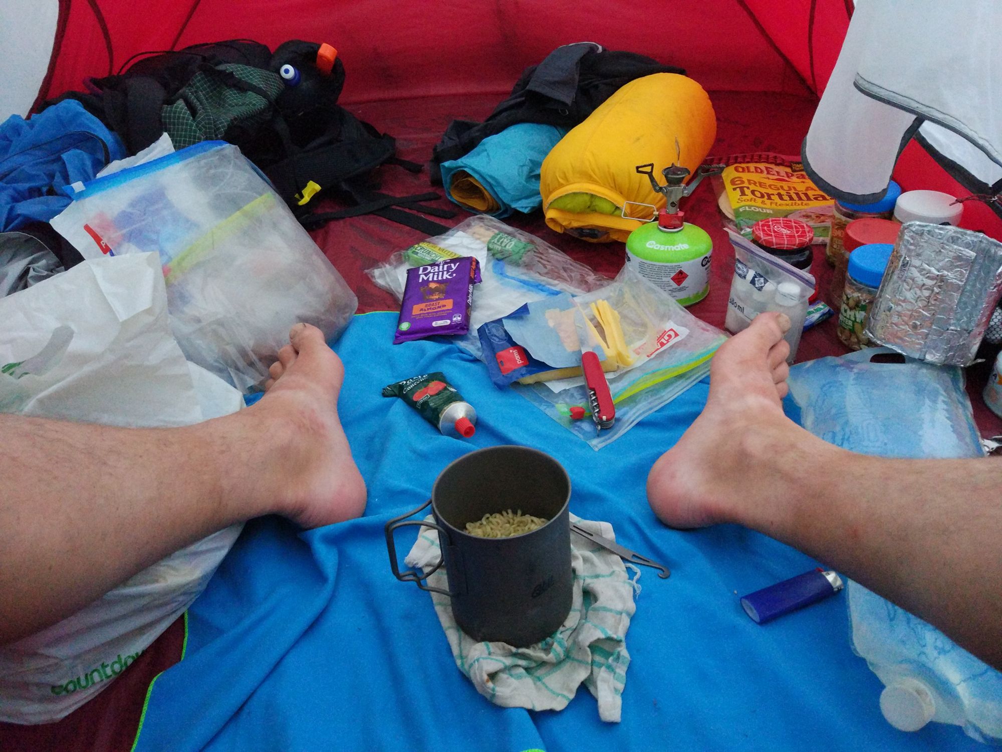 Im Zelt dann erst einmal Essen zubereitet.