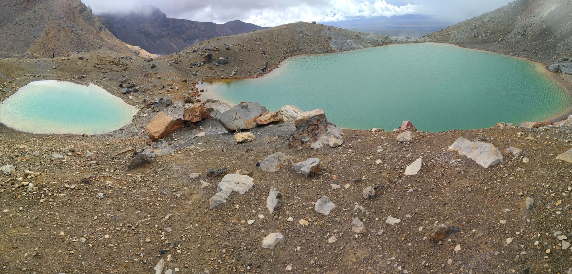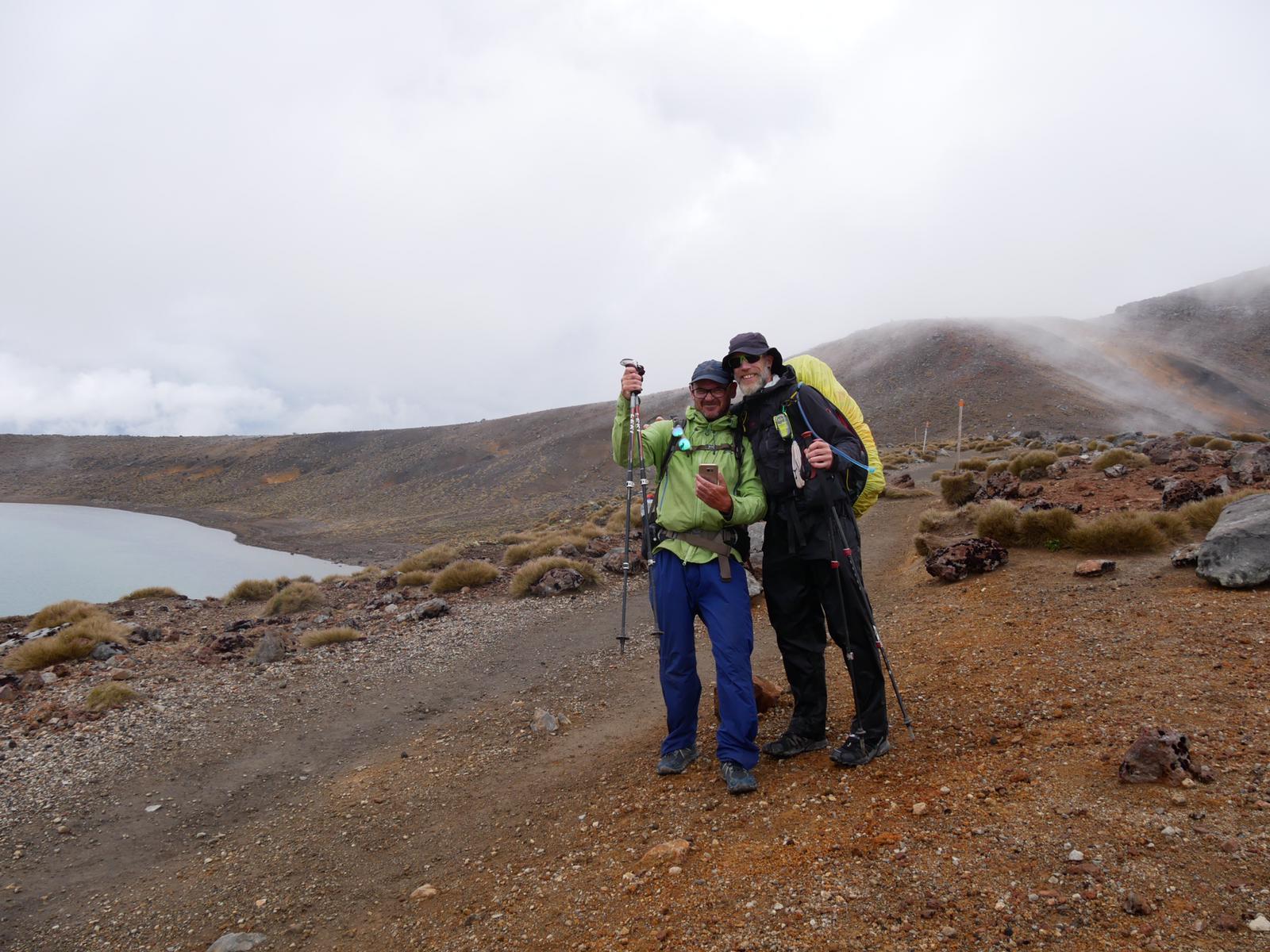 Als ich heute Morgen aufstand, es war 4:50 Uhr, war der Holländer Tom schon weg. Da Rhys seit gestern Probleme mit seinem Fuß hat, ist er vor uns gestartet und er wartete auf uns am Anstieg zum „Tongariro Alpine Crossing“. Wir sind die knapp 9 Km ohne Pause durchmaschiert und waren dann um 9:00 Uhr dort.