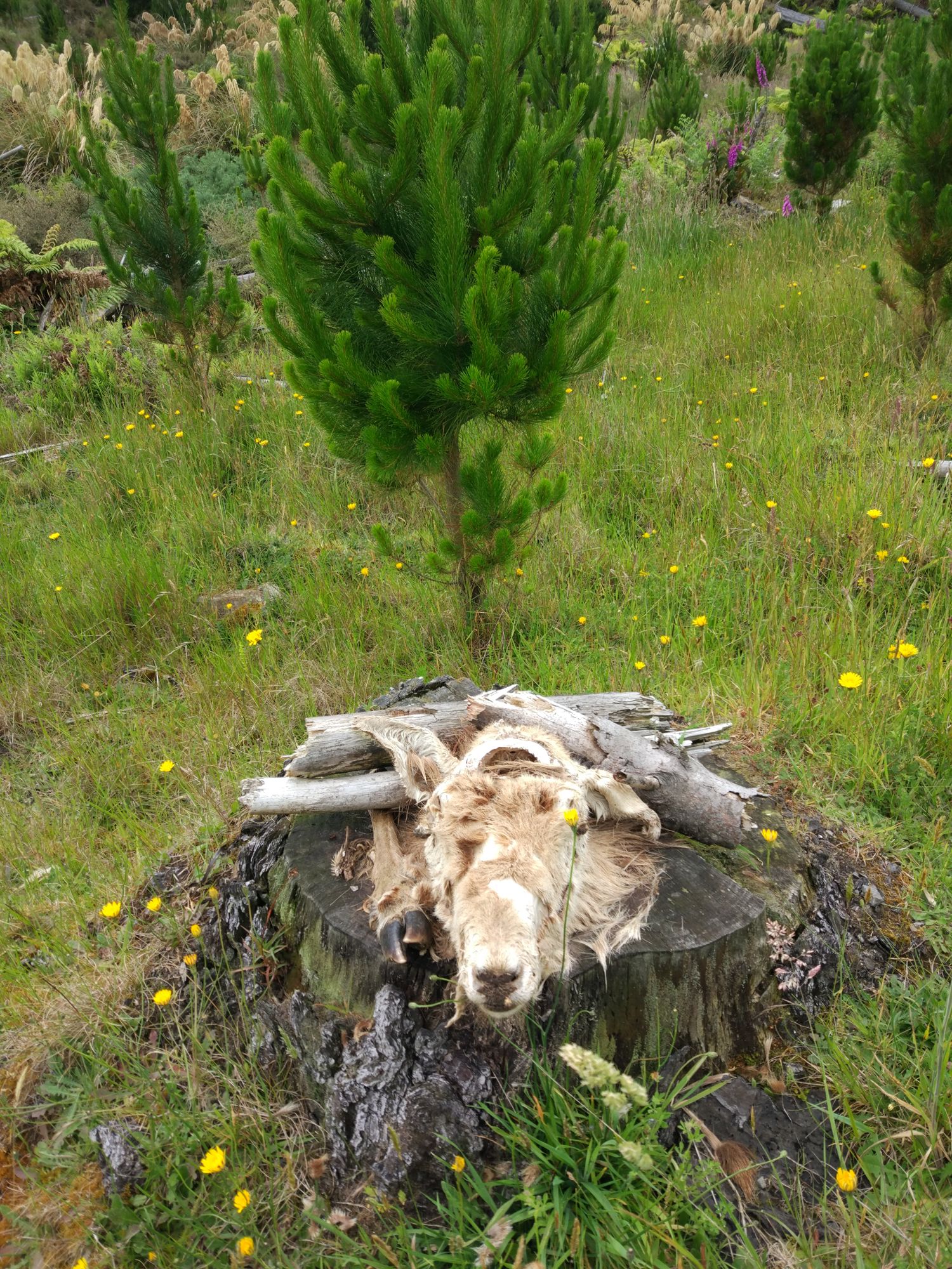 Kurz vor unserem Lunch hat, ich schätze ein Farmer, den folgenden Tierkopf am Wegesrand dekoriert.