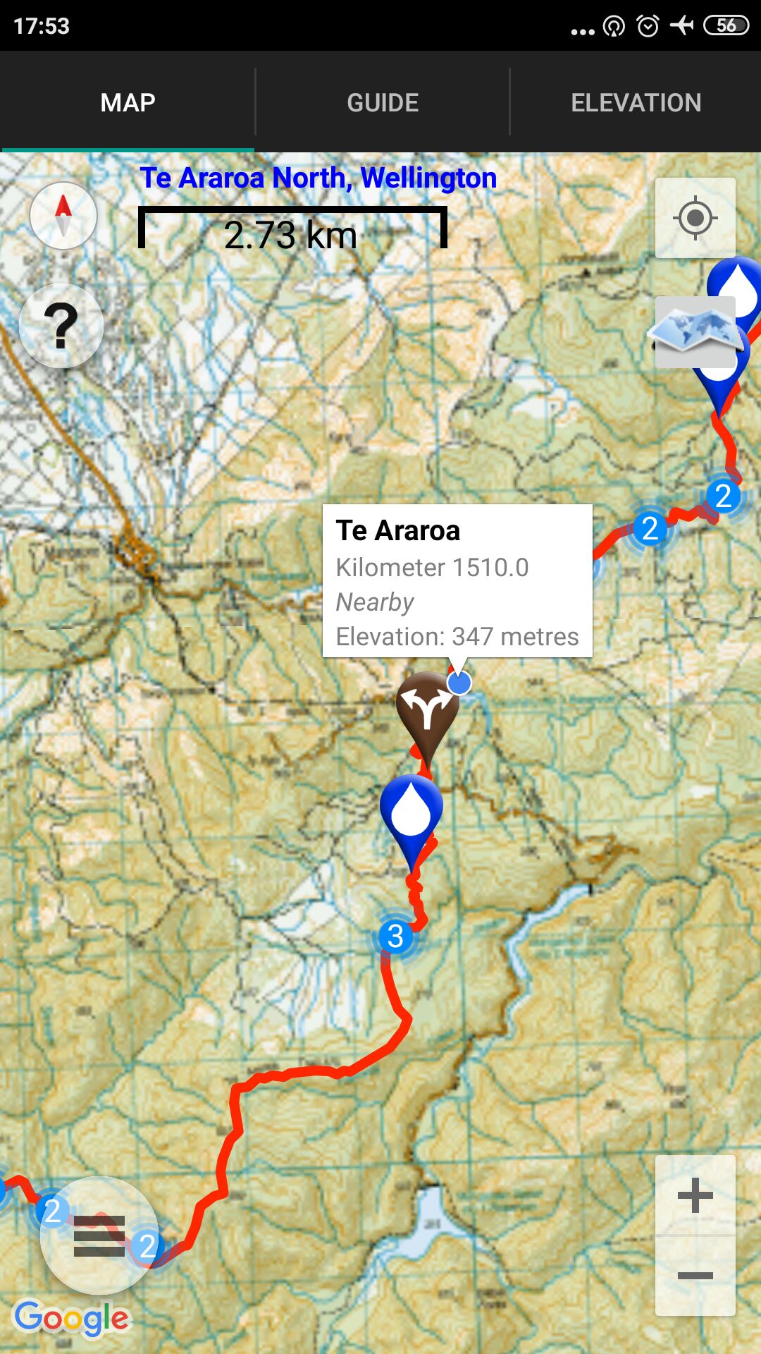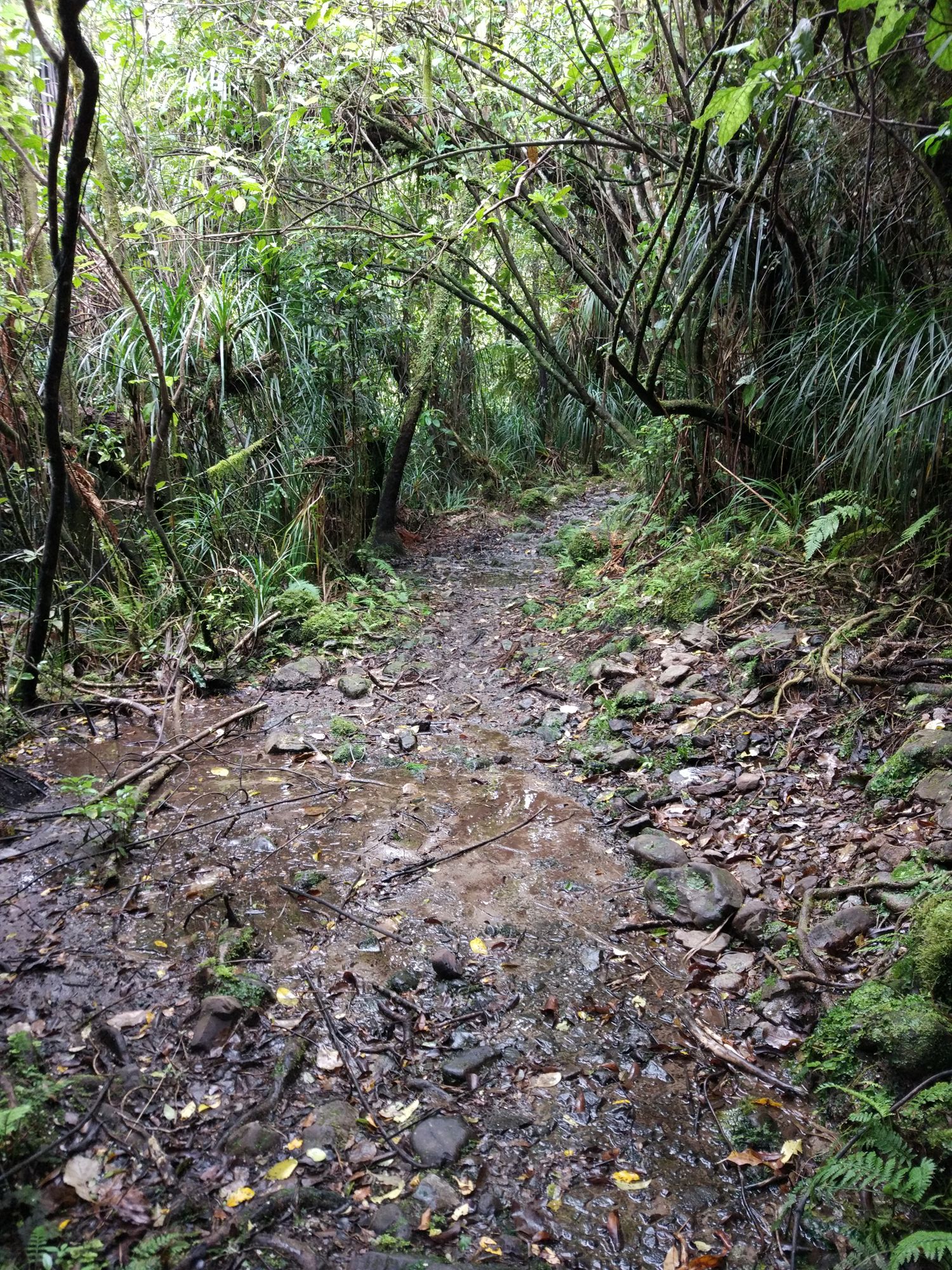 Um 7:30 Uhr ging es heute Morgen auf zu unserem letzten Berg- Waldabschnitt auf der Nordinsel. Dazu mussten wir erst einmal einen ca. 750m hohen Berg besteigen. Da der Weg aber einigermaßen begehbar war, sind wir sehr gut voran gekommen, auch wenn der erste Abschnitt sehr steil war. Unsere zweite Pause haben wir dann schon auf der Spitze gehabt.