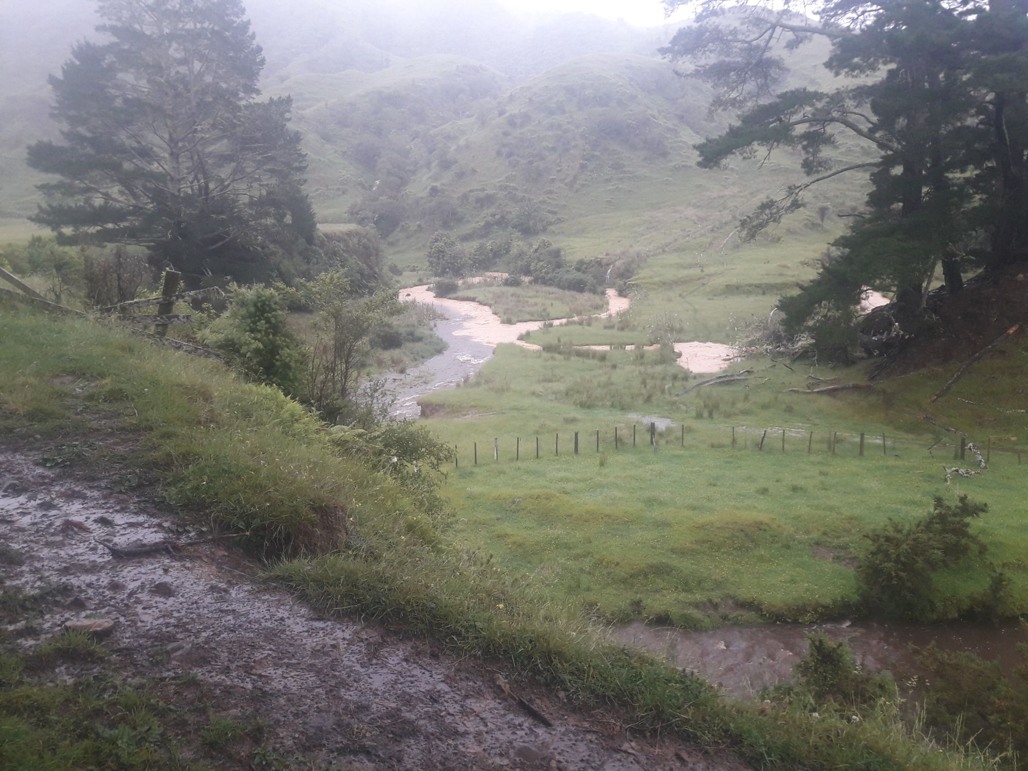 Anschließend ist uns noch der Zulauf zu einem anderen Fluß aufgefallen, der sehr schlammig war, natürlich auch durch den Regen.