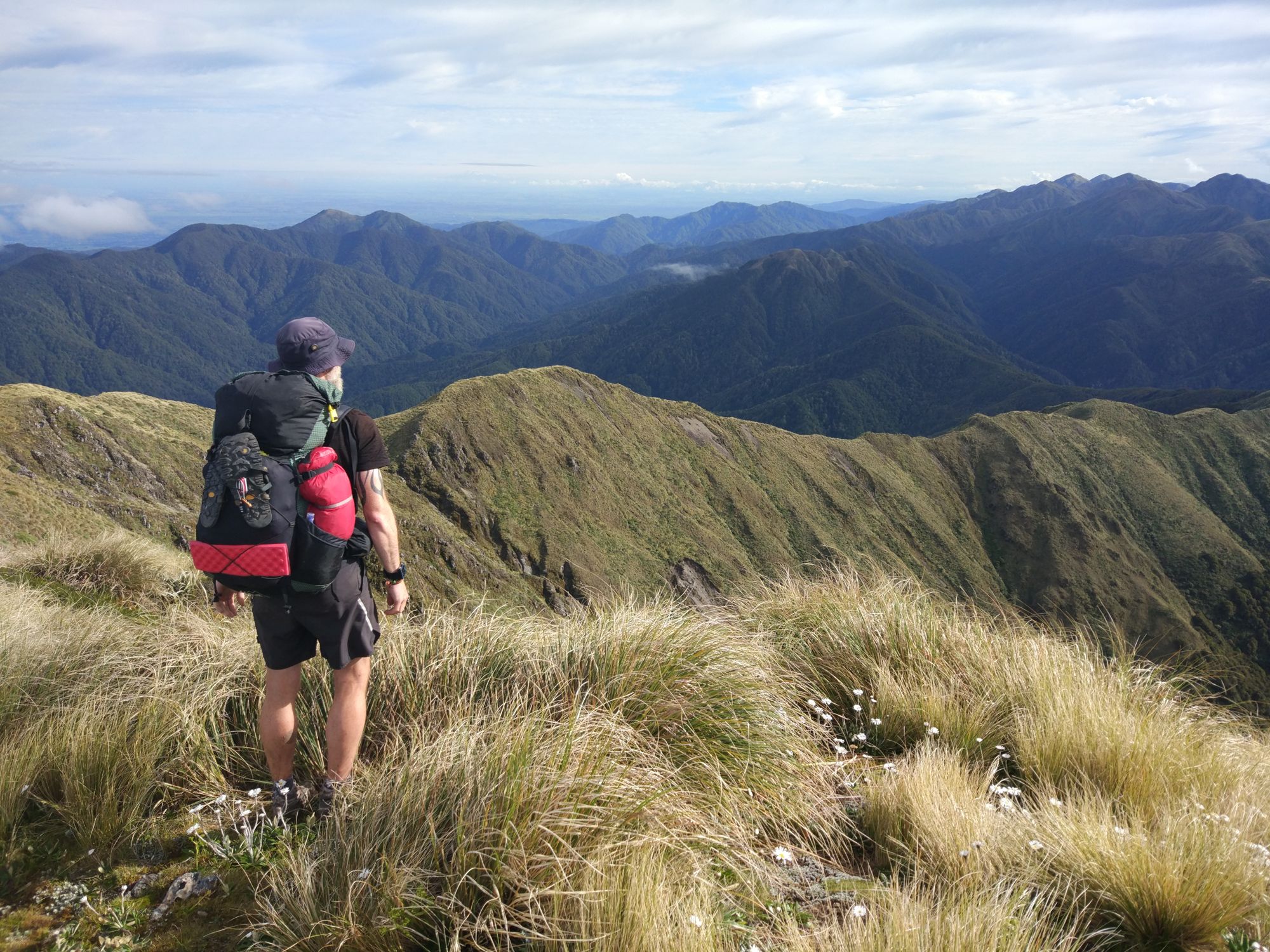 Der heutige Morgen verlief mal wieder ganz entspannt, da auch nur 27Km auf dem Tagesprogramm standen. Um 7:20 Uhr ging es dann gemächlich auf einer Schotterstraße los. Nach 3,5Km kamen wir an einem Parkplatz vorbei, auf dem wir 3 Kiwis, die eine Tageswanderung machten, trafen. Nach einem kurzen Smalltalk und deren Verwunderung, dass 3 Europäer nach Neuseeland kommen, um so eine lange Wanderung zu machen, ging es dann weiter, immer schön Bergauf.