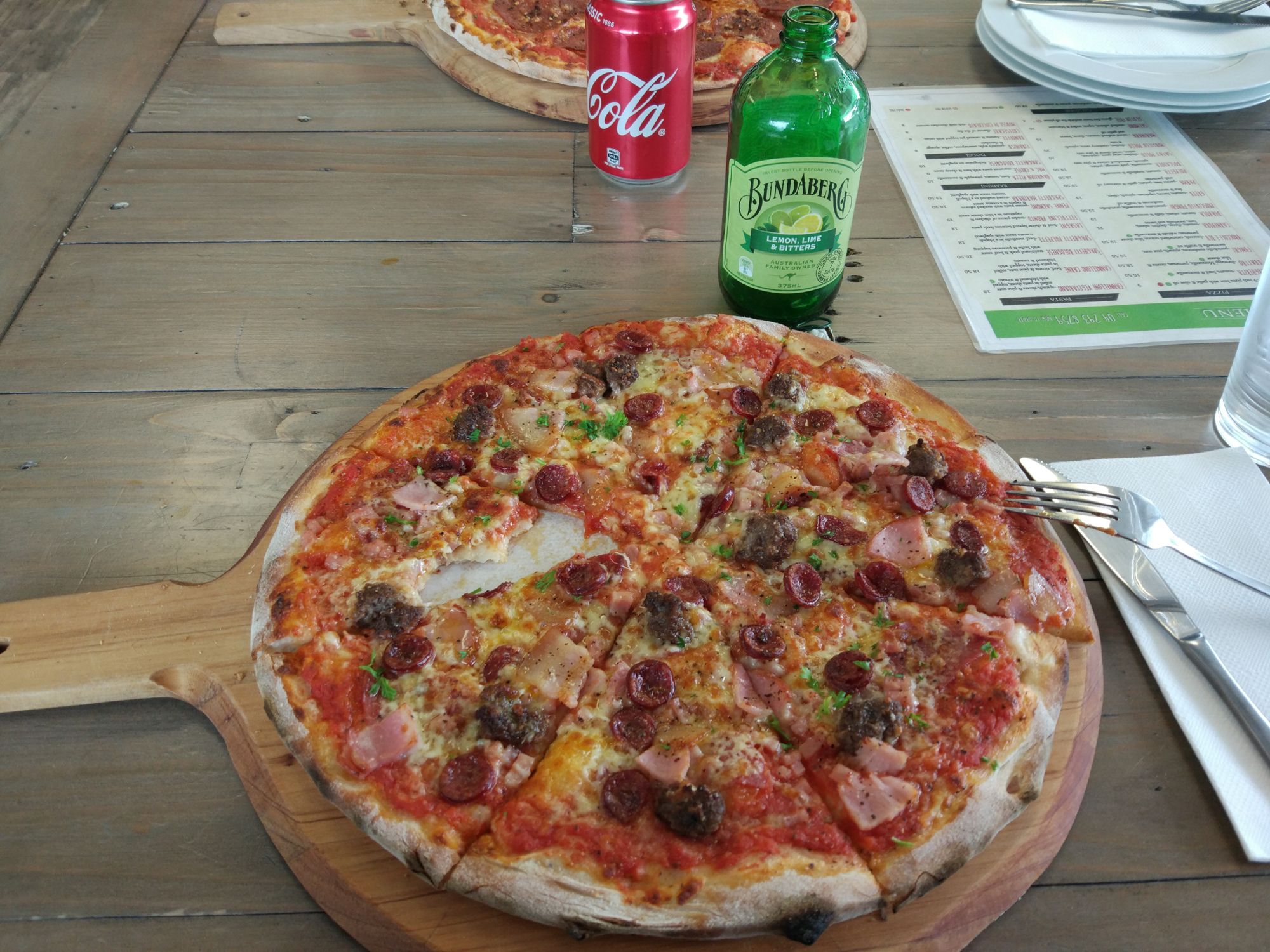 Auch den anschließenden Abstieg konnten wir mühelos hinter uns bringen, so dass wir die 14Km im Wald schon um 14:00 Uhr beendet haben. Nun mussten nur noch 10Km bis zur Stadt und weitere 2Km zur Picnic Area absolviert werden. Gehen 16:30 Uhr trafen wir in der Stadt ein und sind gleich zielstrebig zu einem Pizzaladen gegangen, um etwas richtiges zu essen.