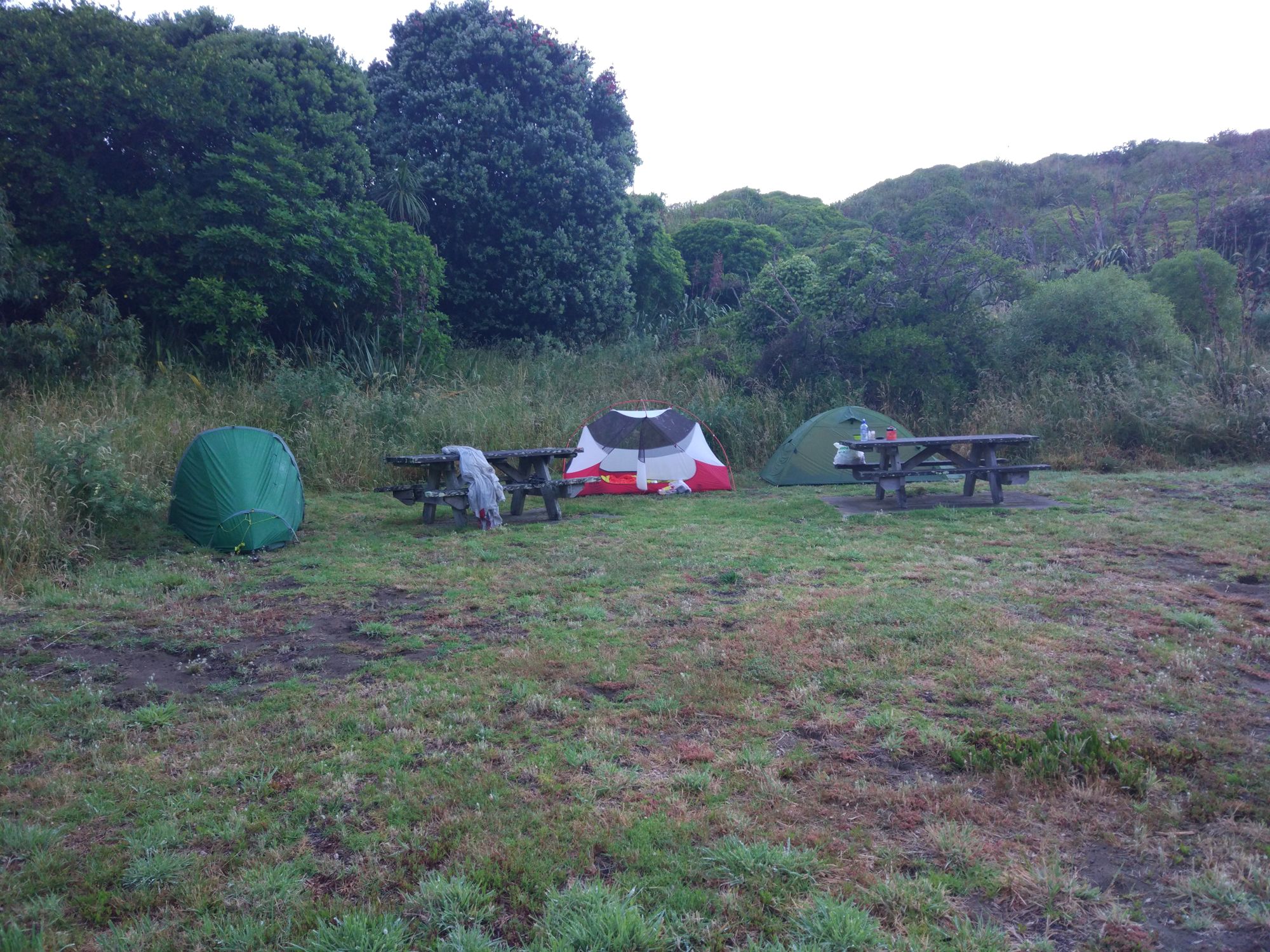 Ich wachte in der Nacht auf, da mich ja ungefähr eine Myriade von den fucking Sandflys zwei Tage zuvor gebissen hatten und das juckt wie nichts gutes. Obwohl ich meine lange Laufhose und Socken anhatte sind die Mistviecher durchgekommen. Ich stellte außerdem fest, dass es mal wieder schüttete. Als wir Morgens aufstanden, hatte es zwar aufgehört, aber dass war nur von kurzer Dauer. Wir fuhren dann gehen 9:00 Uhr los, es hörte auf zu regnen und die Sonne kam heraus.